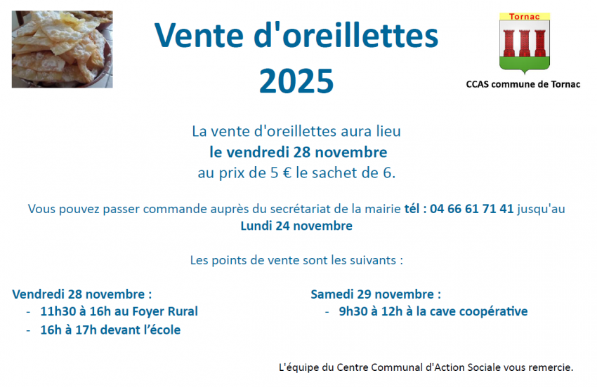 CCAS - Vente d'oreillettes les 28 et 29 novembre